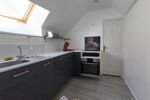 À l'étage : une cuisine équipée, un séjour cosy, une chambre et une salle de bains avec WC.