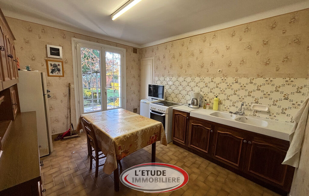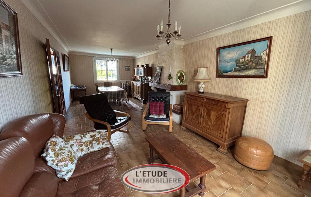 Dans le bourg, maison non mitoyenne de plain-pied comprenant une entrée, un salon séjour triple exposition Est, Sud et Ouest, une cuisine, trois chambres, une salle de bains et un WC.