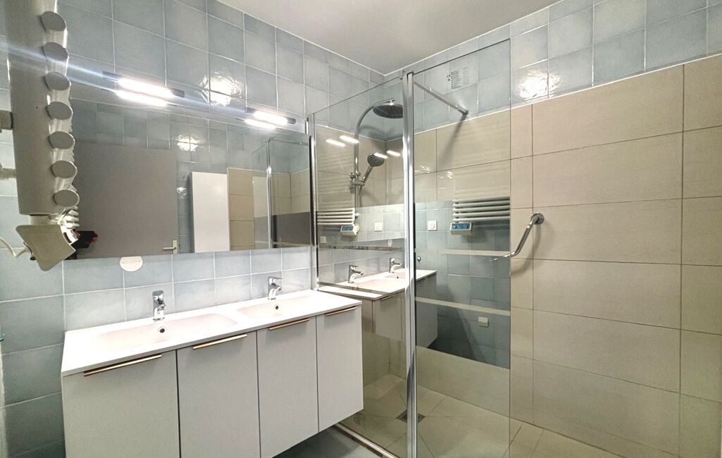 L’espace nuit comprend deux chambres, une salle d’eau moderne et un toilette séparé. L’appartement dispose également d’une cave.