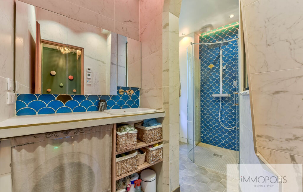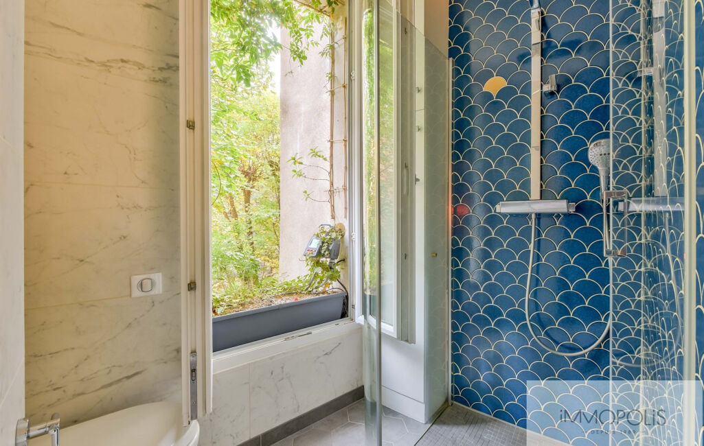 Parquet massif en pointe de Hongrie, double vitrage, porte blindée, ballon thermodynamique neuf, isolation acoustique et thermique complète (murs, sols et plafonds).