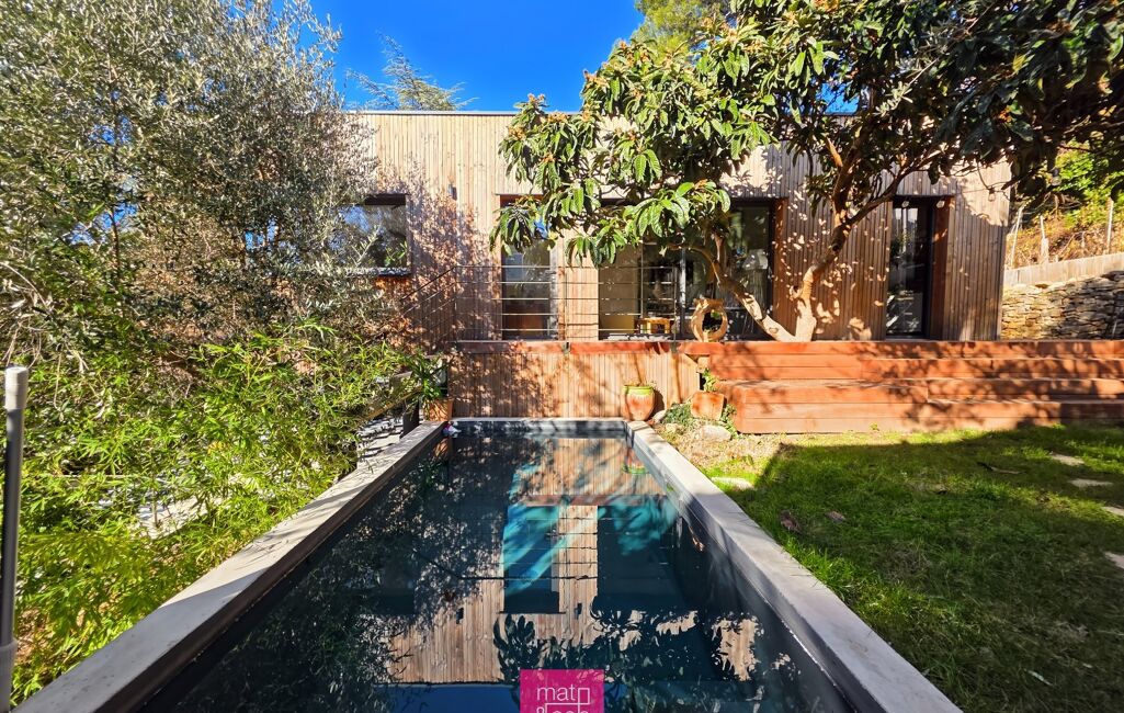 Un lieu qui touche juste. Bois, volumes chaleureux, atmosphère enveloppante Cette maison domine le paysage et invite à la déconnexion. La piscine devient le point de ralliement des beaux jours, trois chambres dont 1 suite pour la vie de famille et grand garage. À quelques minutes du centre-ville, un lieu inspiré, entre minimalisme chaleureux et esprit maison de vacances.