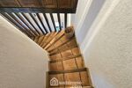 À l'étage, la mezzanine distribue deux chambres, toutes deux confortables et lumineuses. Un second escalier, accessible depuis le patio, mène à un espace indépendant composé d'un bureau et d'une troisième chambre, créant une configuration idéale pour télétravailler, recevoir un adolescent ou offrir un espace privé à un proche.