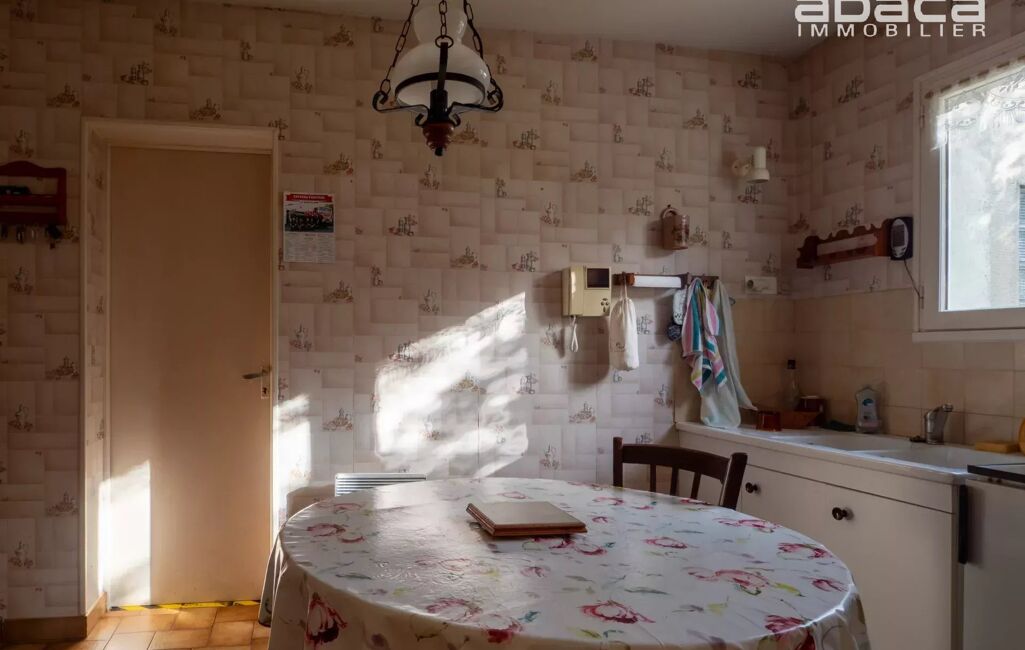 De plain-pied et située sur une grande parcelle, ce bien exposé sud propose une pièce de vie, cuisine, bureau/chambre, 2 chambres, salle de douche/wc.
