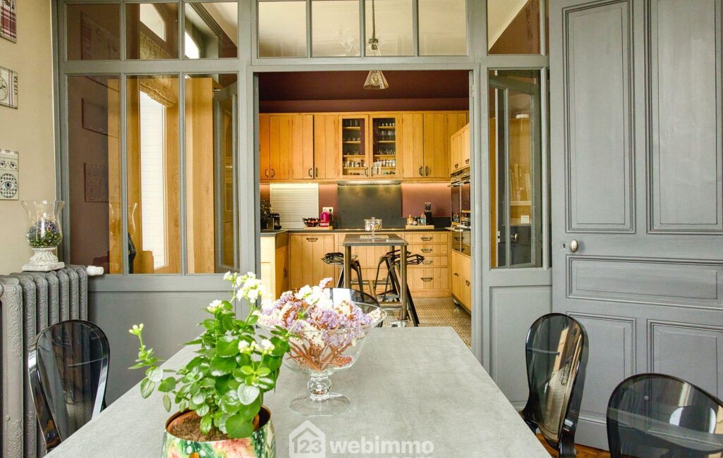 Dès l'entrée, le ton est donné : carreaux de ciment, boiseries, belles hauteurs sous plafond et parquets anciens composent une atmosphère chaleureuse et raffinée. La maison a été parfaitement entretenue au fil des années et se présente aujourd'hui dans un état irréprochable.