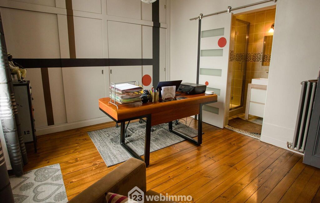 Au second étage, sous les rampants, un bureau pouvant faire office de chambre et une salle de bain viennent compléter l'ensemble, offrant un espace calme et indépendant, idéal pour le télétravail ou l'accueil d'invités.
