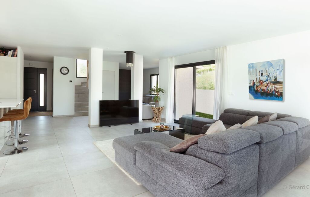 Une grande pièce de vie baignée de lumière