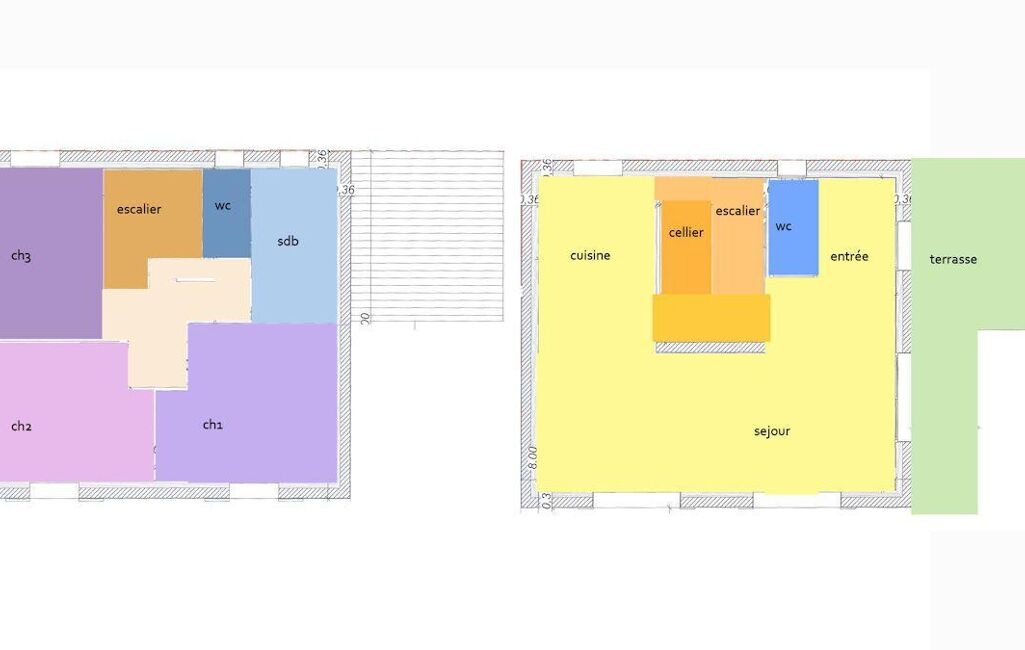 À l'étage, l'espace nuit propose trois chambres, avec la possibilité d'adapter l'agencement selon vos besoins (bureau, chambre d'enfant, espace polyvalent). Une salle d'eau ainsi qu'un second WC séparé complètent cet étage fonctionnel.