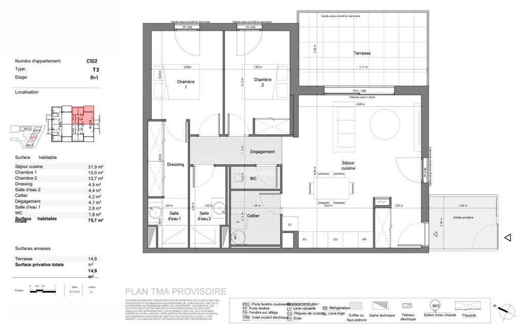 - Surface habitable : 75 m²