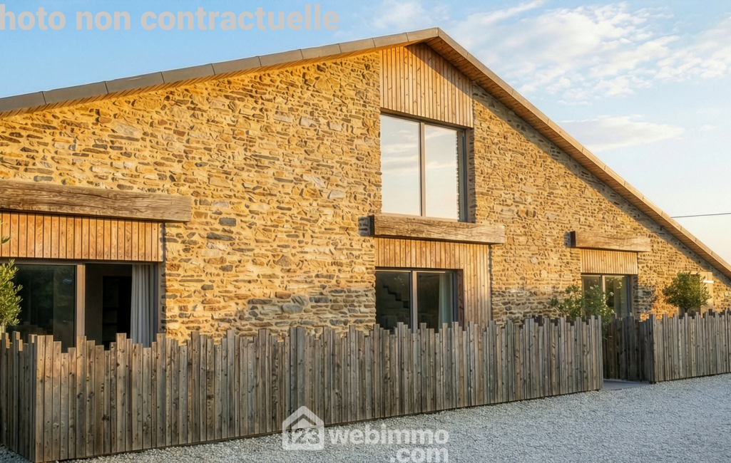 Cette magnifique grange en cours de rénovation sera réhabilitée avec le soin de respecter les matériaux d'origine, pierre et poutres entre autres, avec un résultat final chaleureux et d'excellent standing, ainsi qu'un chauffage performant : P.A.C. AIR/AIR climatisation réversible. PHOTOS NON CONTRACTUELLES.