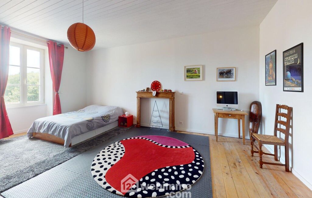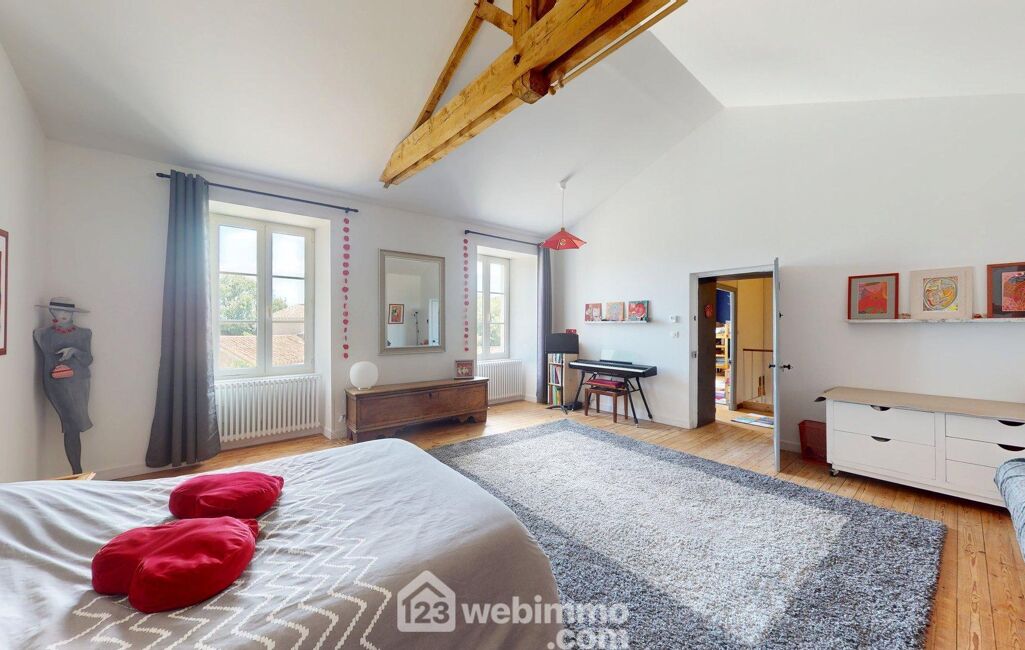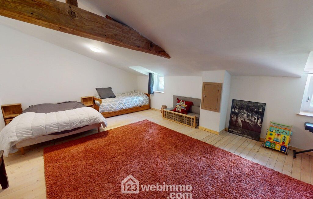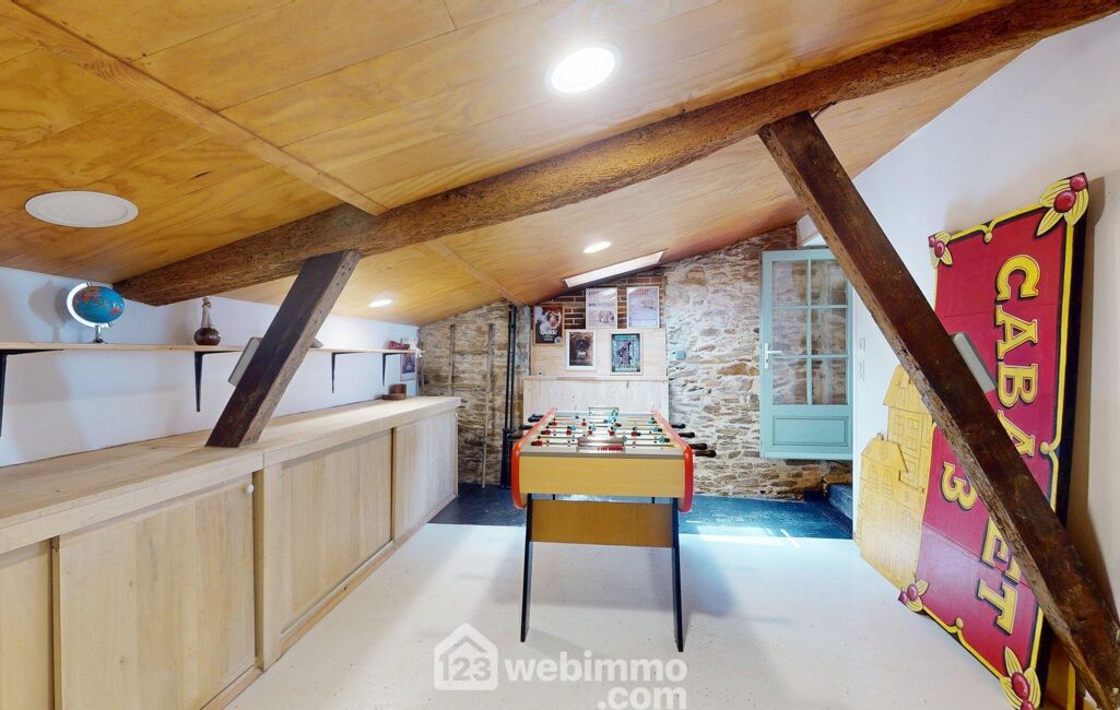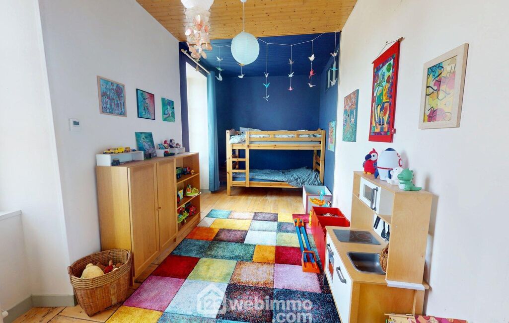 À l'étage, vous trouverez quatre grandes chambres, dont une superbe chambre de 33 m² avec hauteur sous plafond, ainsi qu'un salon TV cosy pouvant aisément être transformé en cinquième chambre. Une salle d'eau au charme rétro complète ce niveau, offrant confort et modularité selon vos besoins.