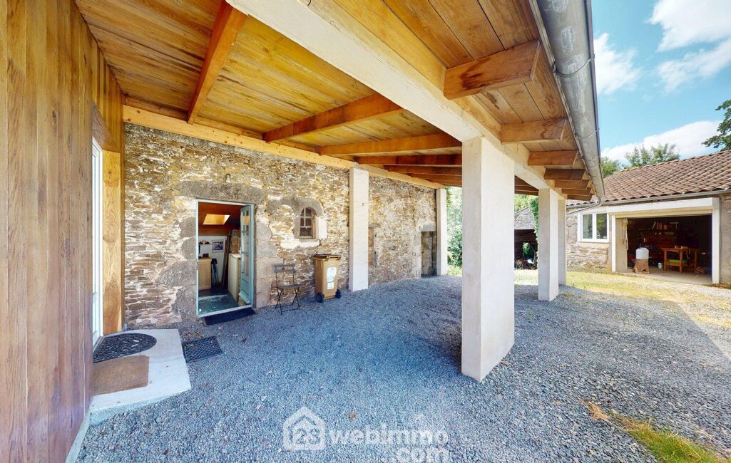 Les annexes sont nombreuses : un garage fermé de 66 m², une grange ouverte d'environ 70 m², un ancien fournil divisé en deux pièces (20 m² et 11 m², parfaites pour un atelier ou une profession libérale), ainsi qu'un auvent de 30 m². La terrasse exposée plein sud, ouverte sur la nature, appelle au calme et à la contemplation.