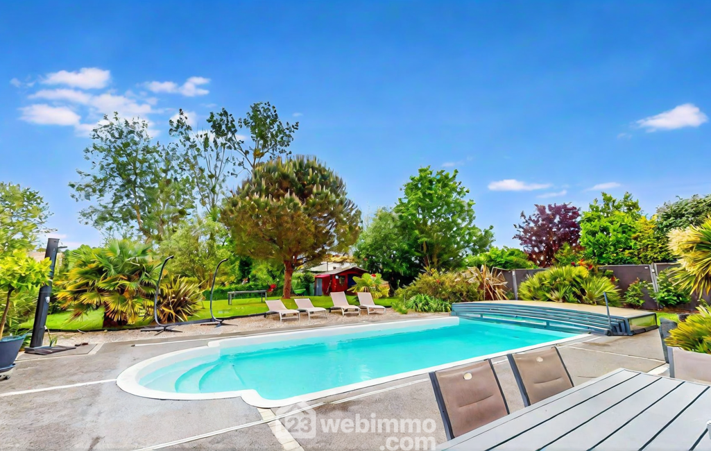 À l'extérieur, le jardin de plus de 1 000 m² vous invite à la détente avec un grand patio, un spa californien 5 places et un authentique barbecue argentin. Un chalet de jardin de 16 m² ainsi qu'un puits, idéal pour l'arrosage, viennent compléter ce cadre idyllique.