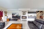 La pièce de vie de 56 m², baignée de lumière grâce à de larges baies vitrées, offre un espace convivial et chaleureux. Elle accueille un salon lumineux avec une cheminée à insert au design épuré, une salle à manger agréable et une cuisine américaine entièrement équipée, signée Arthur Bonnet, idéale pour partager des moments en famille ou entre amis. Un cellier/buanderie attenant permet un rangement optimal et renforce la praticité de l'ensemble.