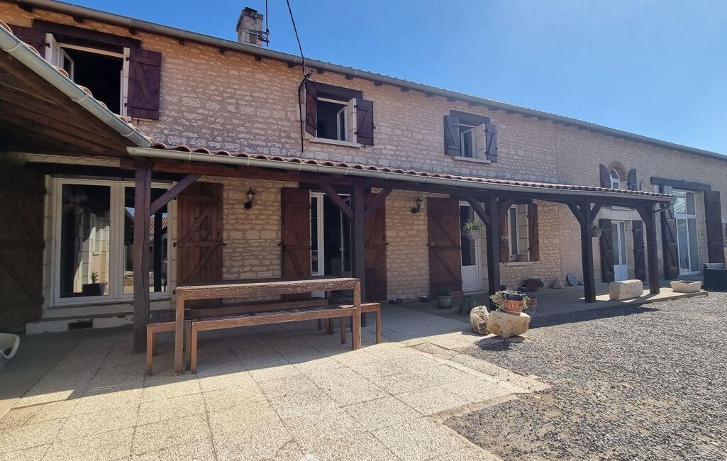 Votre agence 123webimmo l'immobilier au meilleur prix vous présente : Demeure en pierre avec vie de plain-pied, 388 m2 habitables, 10 pièces, 7 chambres, garage, hangar. Terrain de 1831 m2 clos, au calme.
