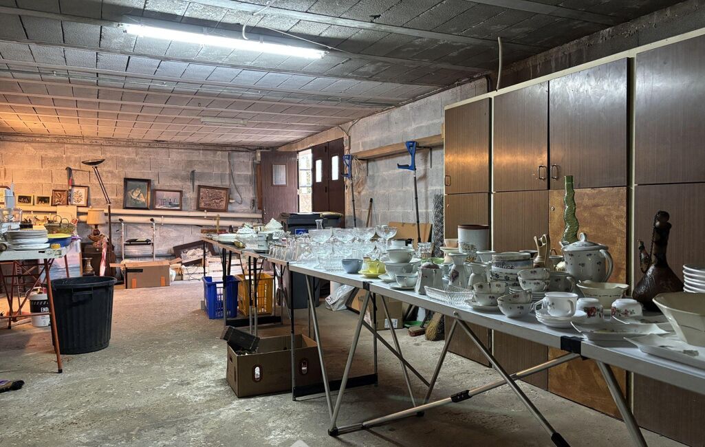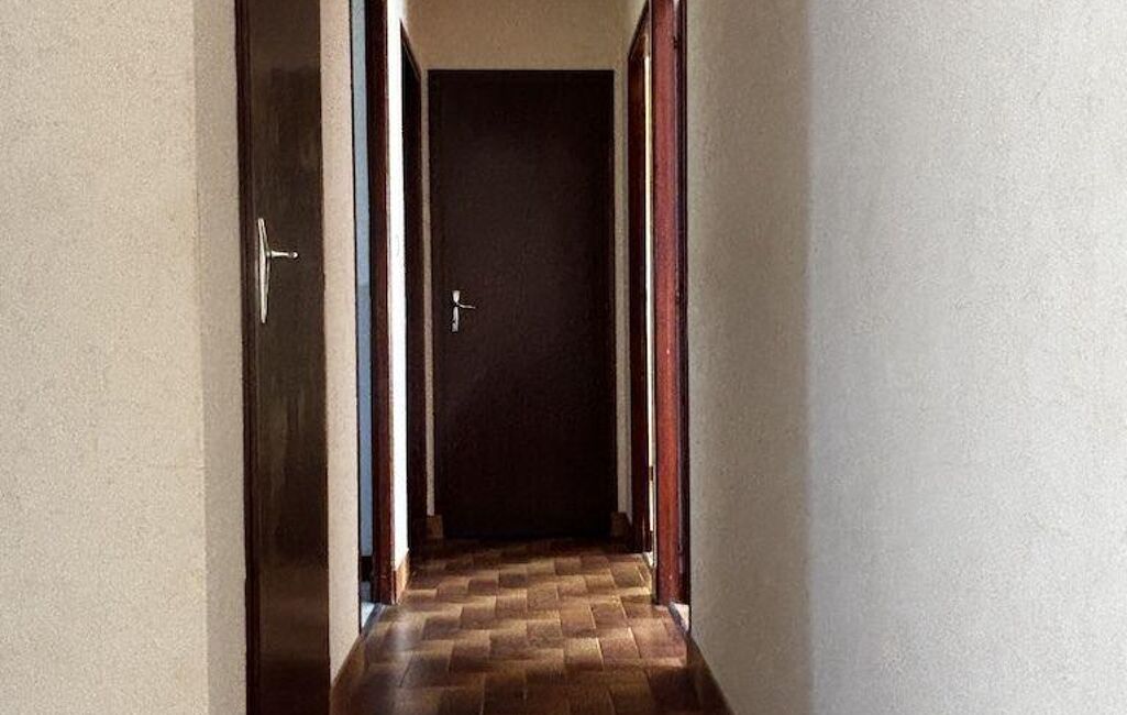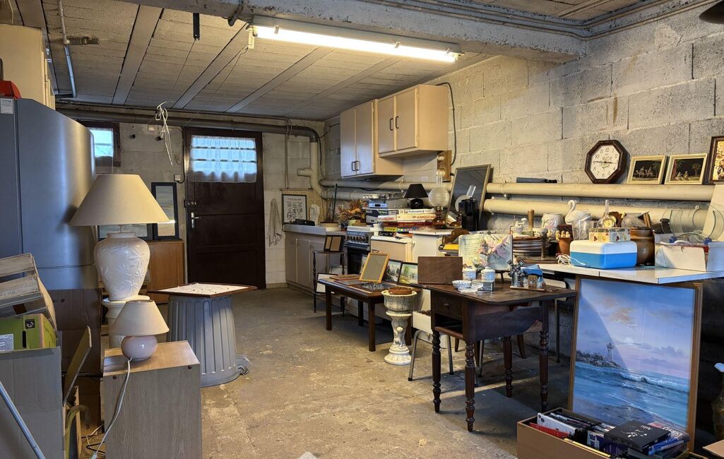 En rez-de-jardin, dégagement, chambre et cuisine d'été. Garage.