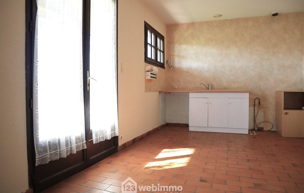 Maison sur sous-sol complet comprenant en rez-de-jardin : entrée, cuisine, séjour avec cheminée, dégagement avec placard, WC indépendant, salle d'eau et 2 chambres avec placard.