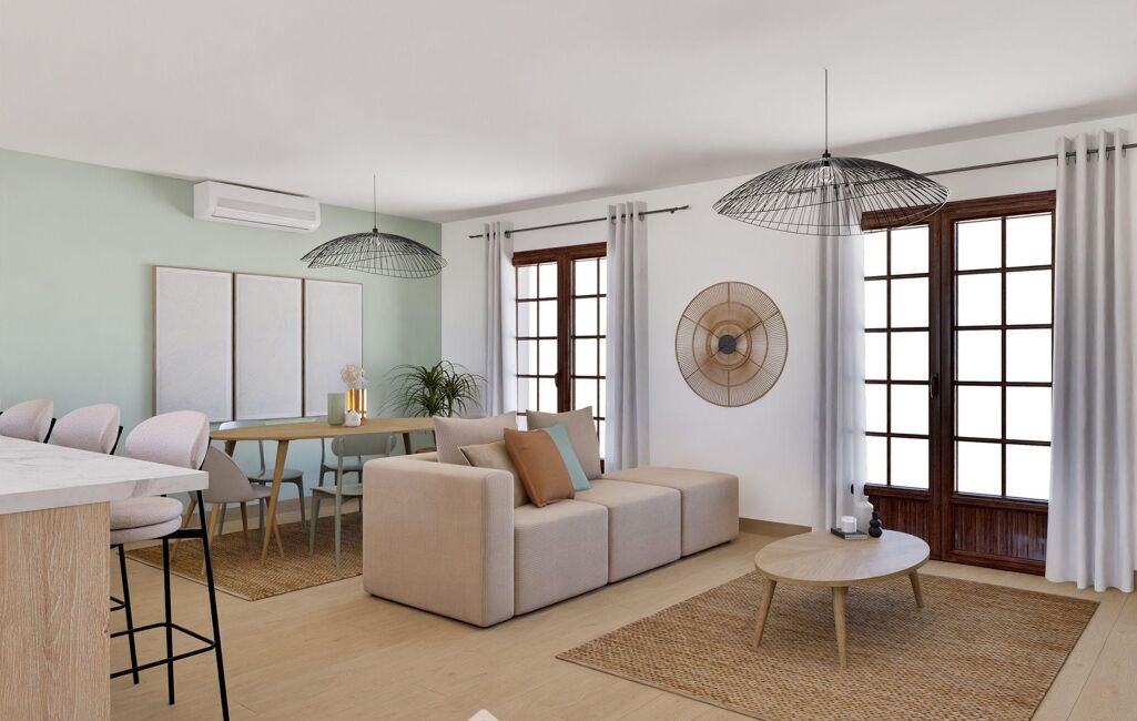 Chauffage électrique, climatisation réversible par split dans le séjour et 1 chambre, portail électrique, terrasses, porte de garage sectionnelle motorisée, VMC.