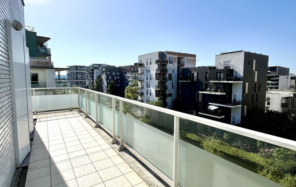 Votre agence 123webimmo l'immobilier au meilleur prix vous présente : Situé dans le quartier Ginko, à quelques mètres du Tram, ce bel appartement de 85m² vous invite à poser vos valises. Au 4ème étage d'une résidence moderne et sécurisée de 2012, il propose une pièce de vie lumineuse, prolongée d'une terrasse avec vue directe sur le lac.