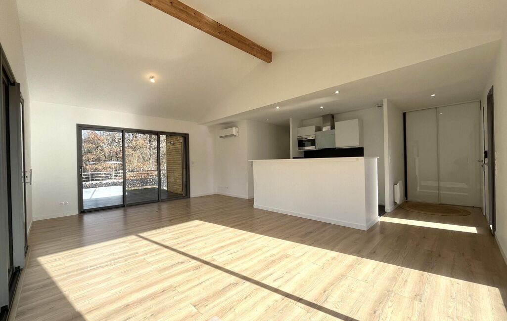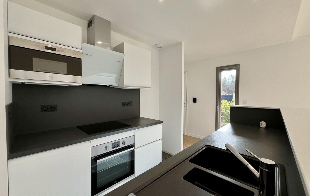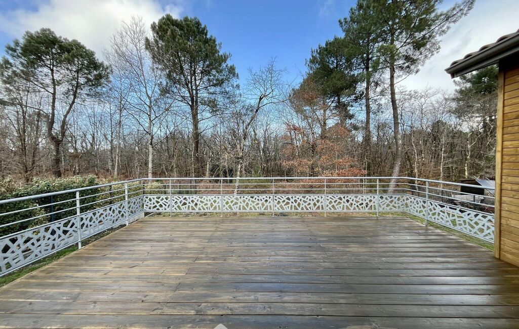 Implantée sur une parcelle de 718 m², la maison profite d'une très belle terrasse et surtout d'une vue exceptionnelle sur la forêt, invitant au calme et à la détente.