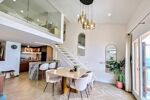 La cuisine ouverte et élégante s'ouvre sur une terrasse de 13 m² exposée sud avec une vue panoramique à 180 degrés sur le golfe de Saint Tropez