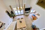 L'entrée mène à un double séjour modulable avec une belle hauteur sous plafond offrant un espace de vie lumineux et la possibilité d'un couchage d'appoint idéal pour recevoir.