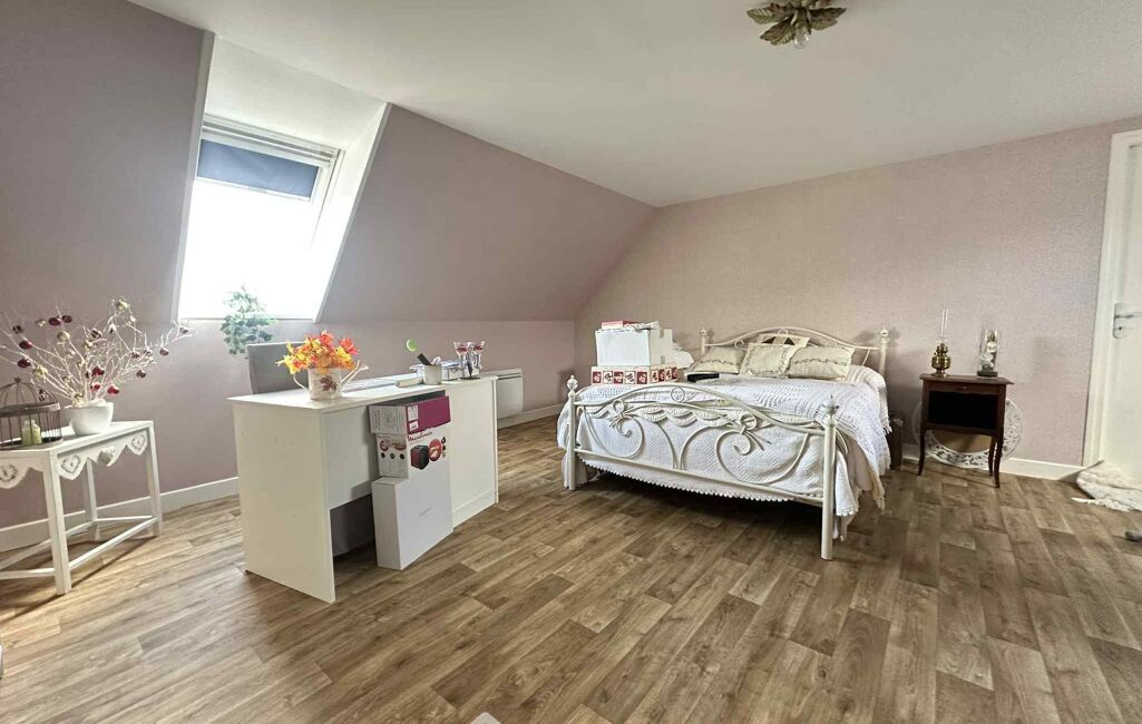 Avec ses 100 m² habitables et les commodités de plain-pied, il se compose d'une entrée accueillante, d'un séjour baigné de lumière ouvrant sur une terrasse bien exposée, d'une cuisine à aménager selon vos envies, de 3 chambres spacieuses, d'une salle de bains et de WC séparés. Vous apprécierez également le garage motorisé, son allée pour stationner plusieurs véhicules et un grenier offrant un bel espace complémentaire.
