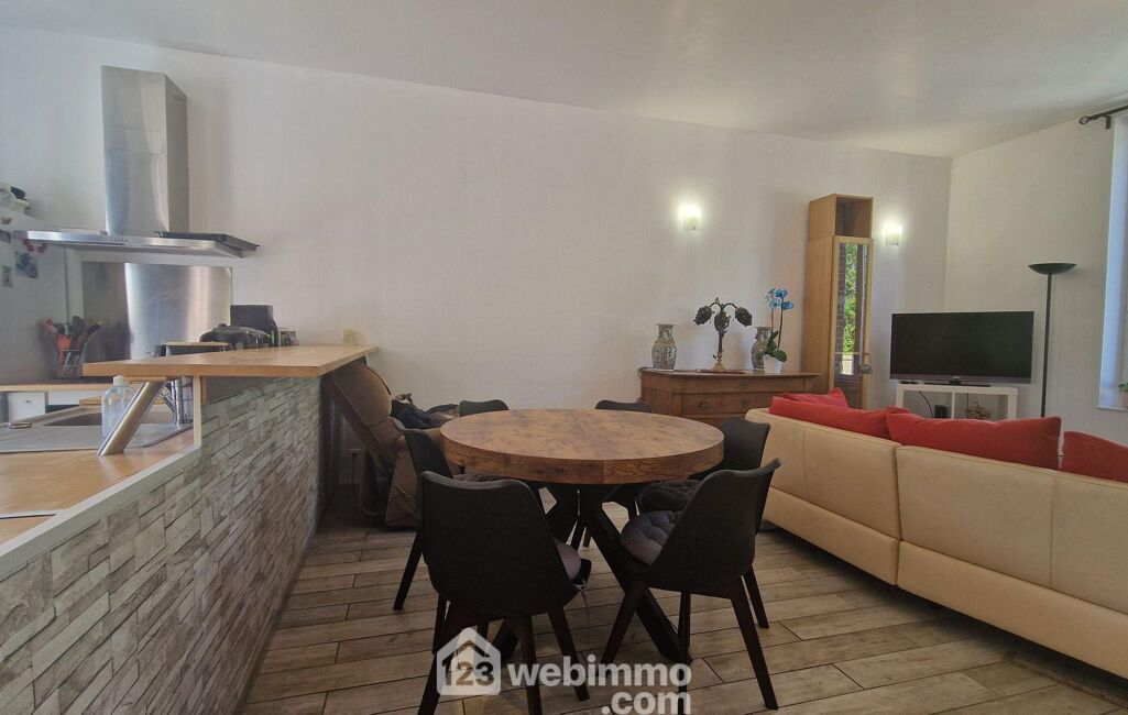 Le salon chaleureux vous invite à des moments de détente, et l'espace repas est parfait pour partager vos repas au quotidien.