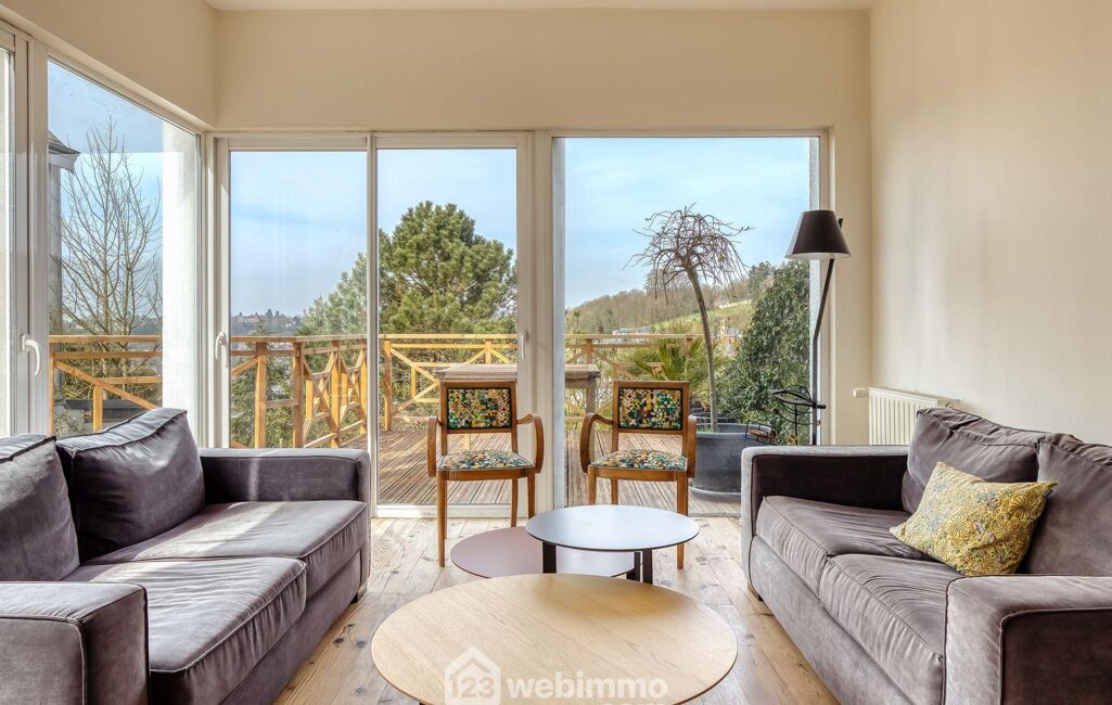 Votre agence 123webimmo vous présente : En exclusivité, découvrez cette élégante maison individuelle offrant une vue dégagée sur Rouen et le quartier Saint-André, idéalement située dans le quartier recherché du Mont-Fortin, à proximité immédiate de l'école Bernanos sur le bas de Bois Guillaume.