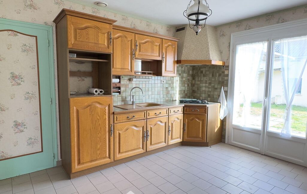 La maison s'ouvre sur une entrée desservant une pièce de vie lumineuse et conviviale avec une cuisine attenante.