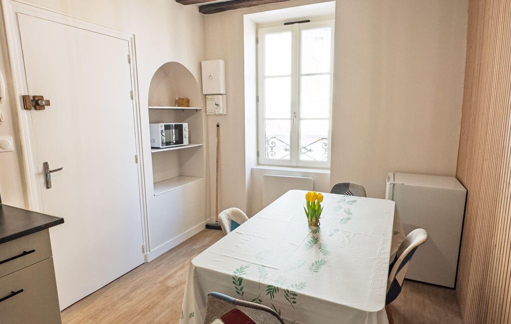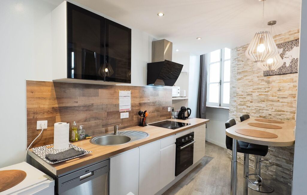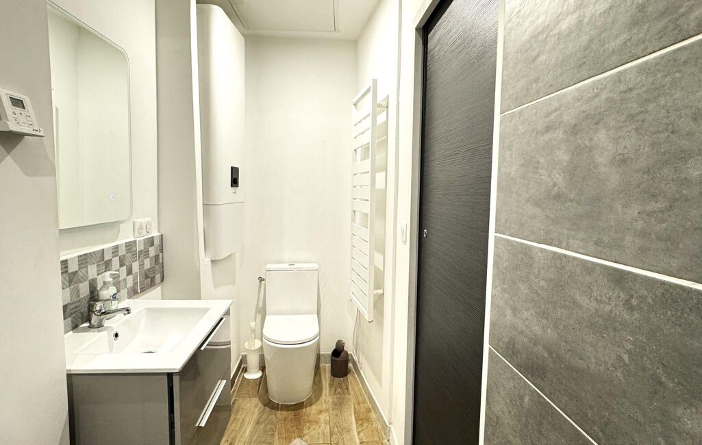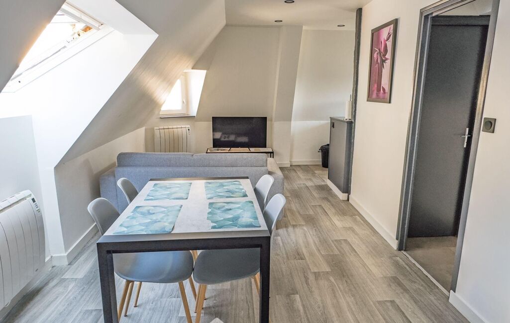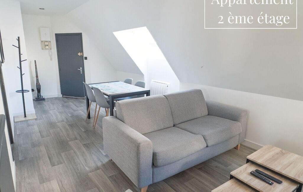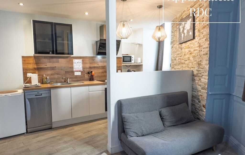 o Appartement de 32 m² entièrement rénové en 2021, loué en meublé touristique : belle pièce de vie avec cuisine ouverte, chambre et salle d'eau avec WC.