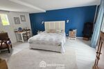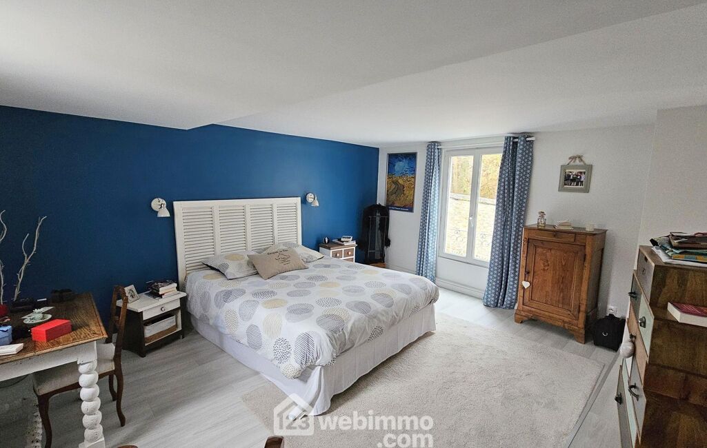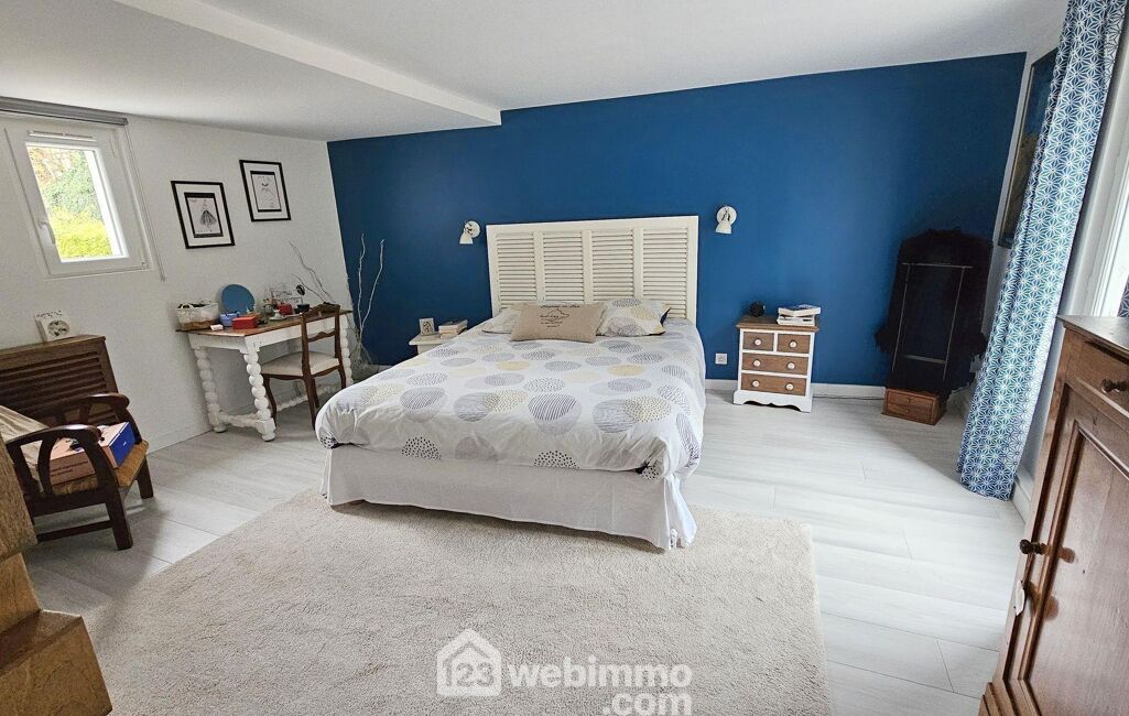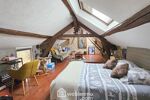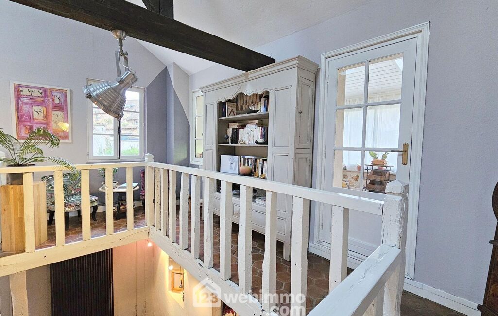 À l'étage, l'espace nuit et travail se déploie autour d'un dégagement desservant plusieurs chambres, un WC indépendant et un bureau parfaitement adapté au télétravail. La mezzanine surplombant le séjour apporte une touche d'élégance supplémentaire et offre un espace ouvert, propice à la lecture ou à la création.