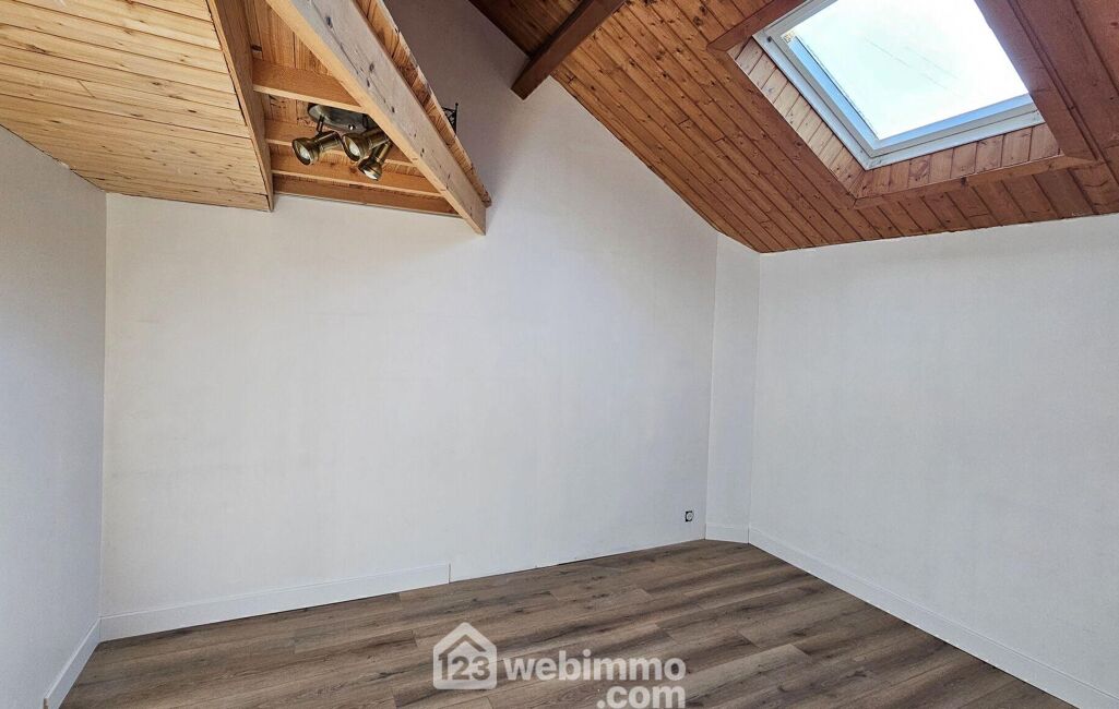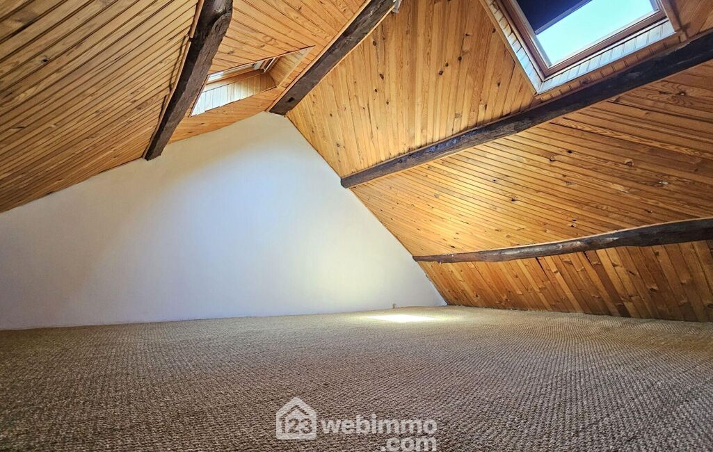 À l'étage, vous trouverez une grande chambre de 14 m², un dégagement pratique, ainsi qu'un grand WC, prêt à être transformé en salle de douche. Une pièce aménagée sous combles de 20 m² au sol permet d'agrandir l'espace de vie selon vos envies. Et pour des moments de détente en extérieur, une belle terrasse de 25 m², sans vis-à-vis et arborée, vous attend pour des moments de convivialité ou de repos en toute intimité.