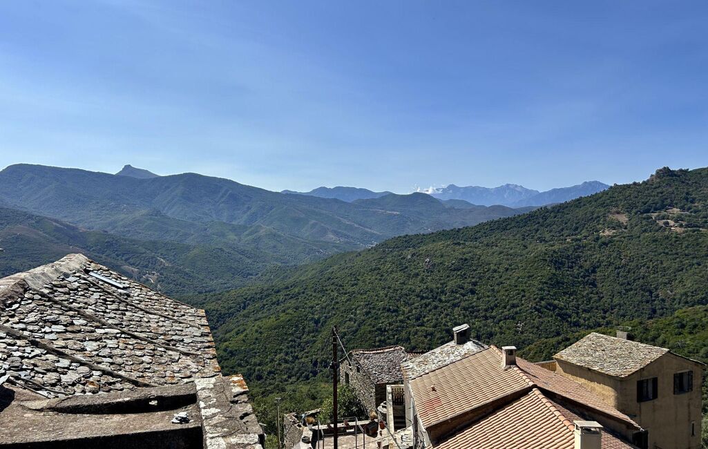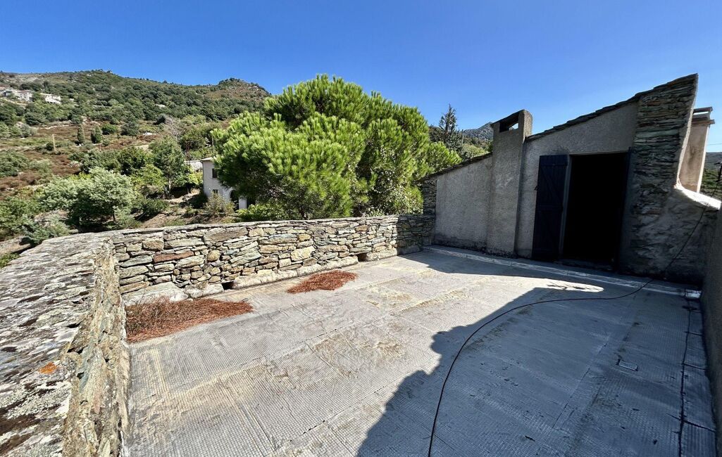 Le dernier plateau est un second séjour (ou une possible suite parentale) qui donne accès à une grande terrasse de 30 m2. Et une vue panoramique sur les autres villages et la belle vallée du Golo. Cette maison attend une rénovation: électricité, plomberie et étanchéité de la terrasse.