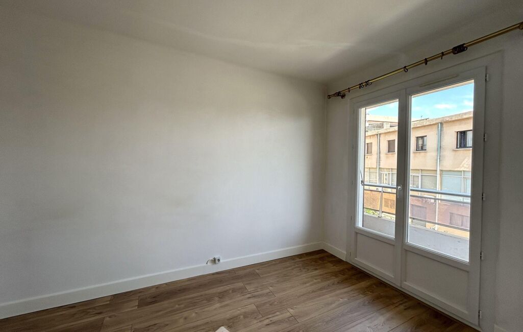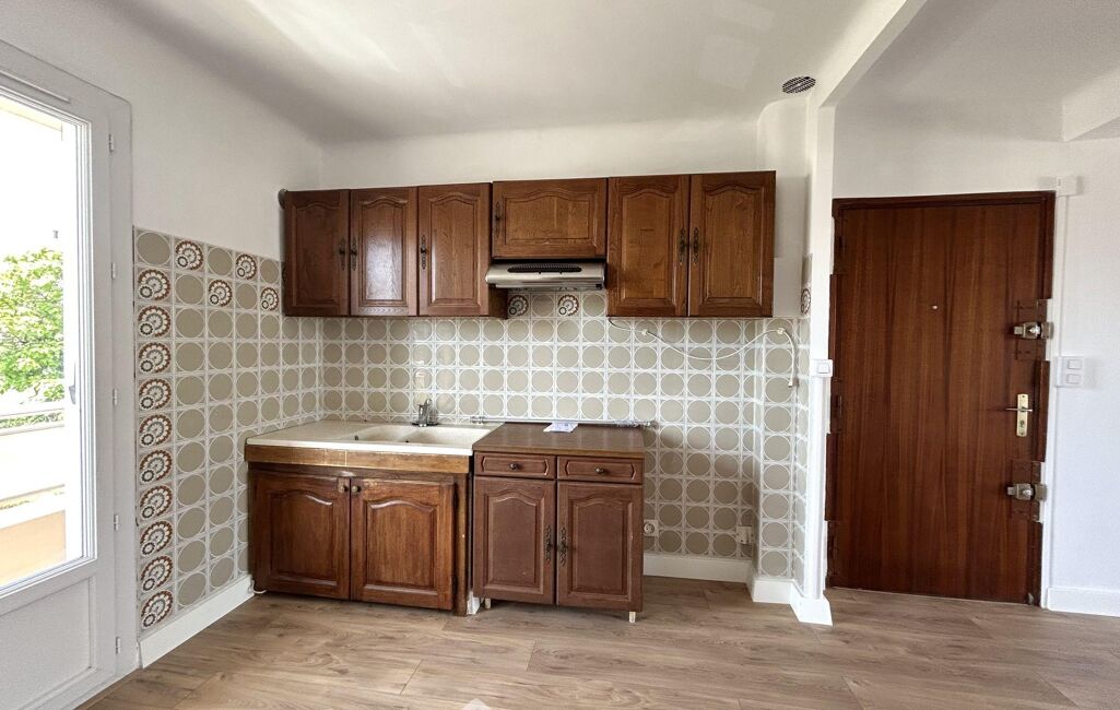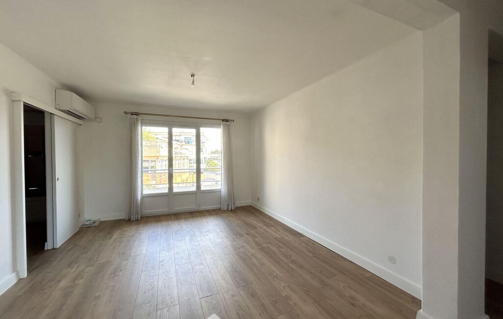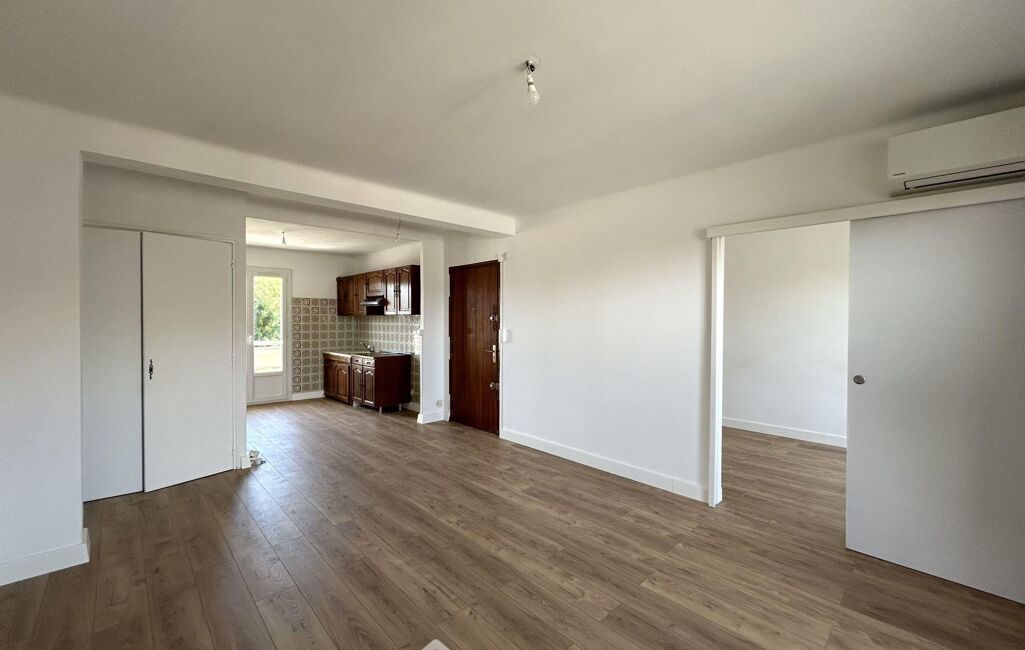 Cet appartement est agréable avec son joli parquet contre collé, la séparation entre cuisine et séjour qui a été retirée, et ses murs enduits et peints.
