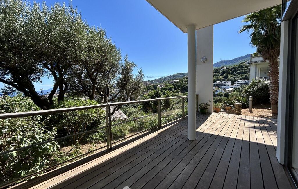 Votre agence 123webimmo l'immobilier au meilleur prix vous présente : Ville-de-pietrabugno - Dans une résidence appréciée, appartement duplex T5 de 165 m2 avec terrasses, jardin de 290 m2, cave et parkings.