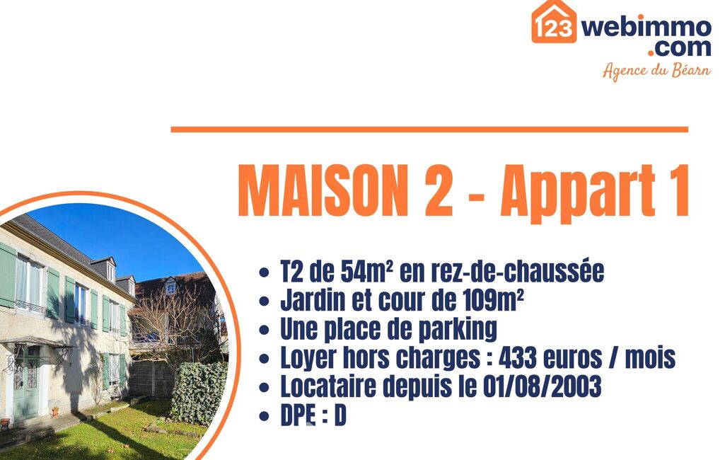 - Un appartement T2 de 54 m² au rez-de-chaussée avec jardin privatif et parking.
