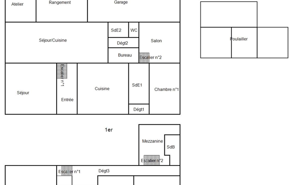 Il y a la possibilité de réaliser facilement deux logements indépendants de 120 m² chacun avec son accès à l'étage (escaliers déjà existants) pour les chambres.