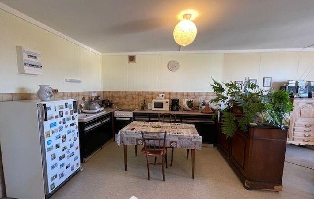 Couloir, cuisine ouverte sur la pièce de vie avec belle baie vitrée en aluminium, trois belles chambres, salle d'eau avec branchement pour MAL, et wc indépendant.