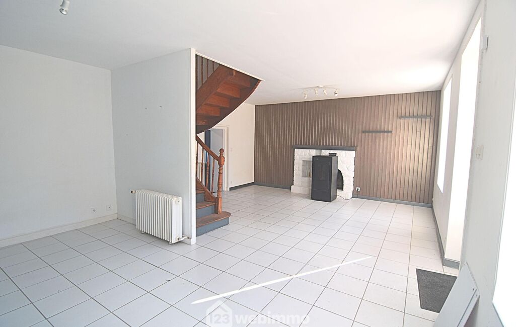 Au rez-de-chaussée séjour lumineux de 33 m² avec poêle à granulés, offrant une belle ambiance chaleureuse.
