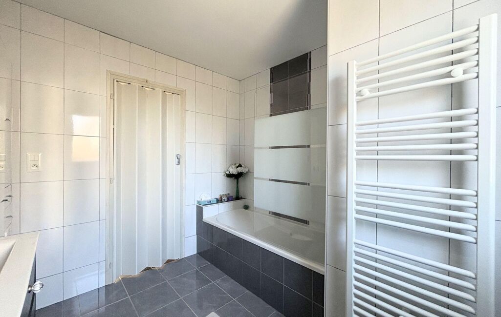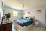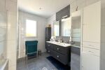 La maison dispose également de 2 chambres de 9 et 13m2, une salle de bains de 7m2 avec meuble double vasque et un WC séparé renfermant un lave-mains.