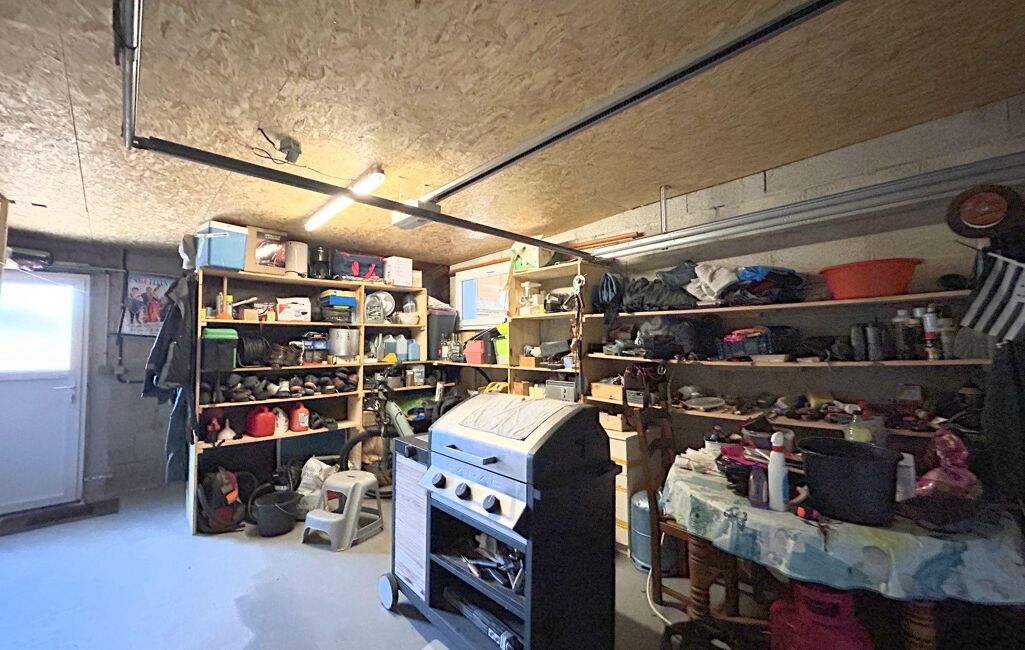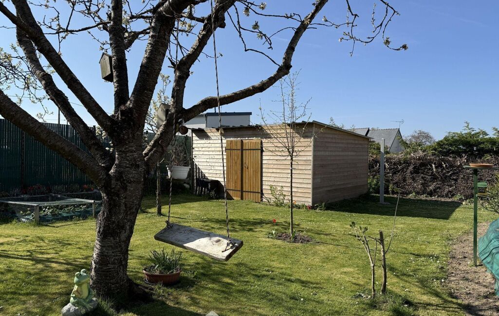 A l'extérieur, le terrain 100% clos avec portail électrique, visiophone et une grande entrée bitumée, offre un beau jardin plat avec arbres fruitiers, un grand abri de jardin de 20m2 sur dalle béton, un garage de 29m2, un carport pouvant accueillir un camping-car et une grande terrasse orientée Sud-Sud/Ouest de 45m2 face au salon.