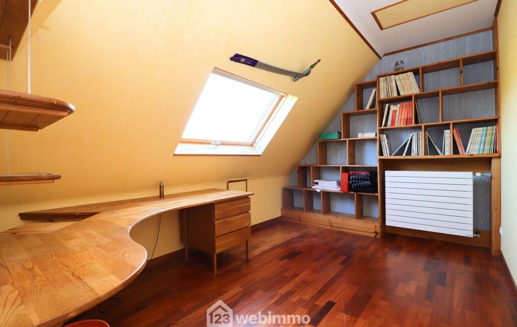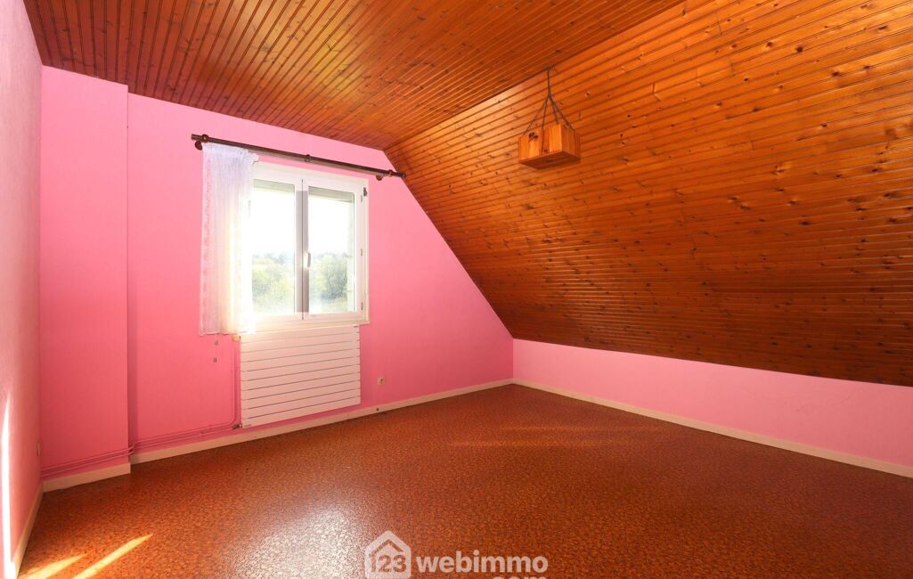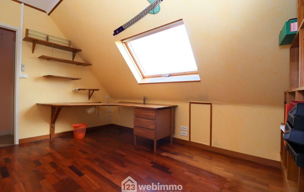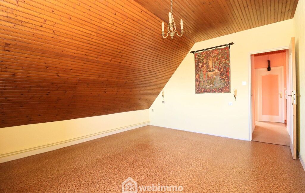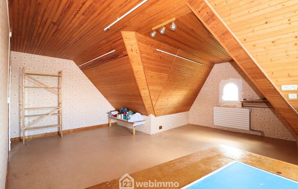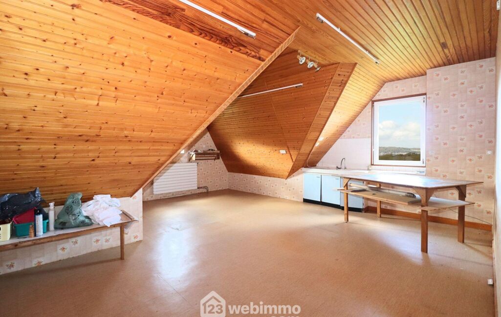 A l'étage, un palier dessert 3 grandes chambres de 16 à 17,5m2 au sol ( 10 à 11,5m2 habitables), un atelier avec un point d'eau qui pourrait également faire office de 4ème chambre à l'étage mesurant 29m2 au sol, 20m2 habitables, une salle de douches et un WC séparé.