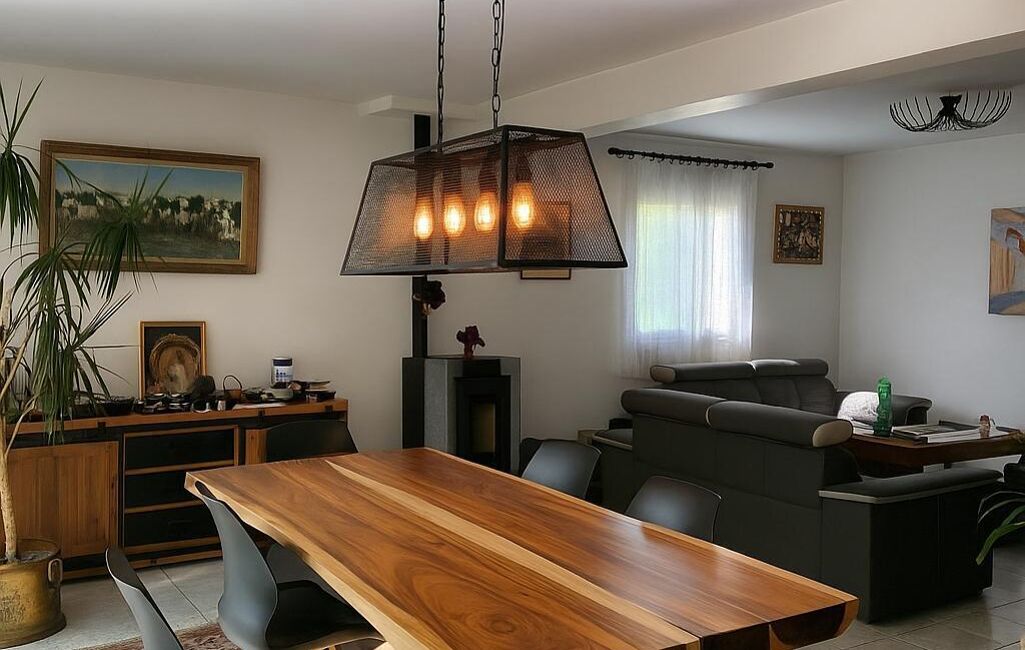 Construite en 1995 sur un terrain paysager de 2034 m², la propriété développe 272 m² au sol (145 m² habitables) et séduit par ses volumes généreux ainsi que par ses prestations de qualité.