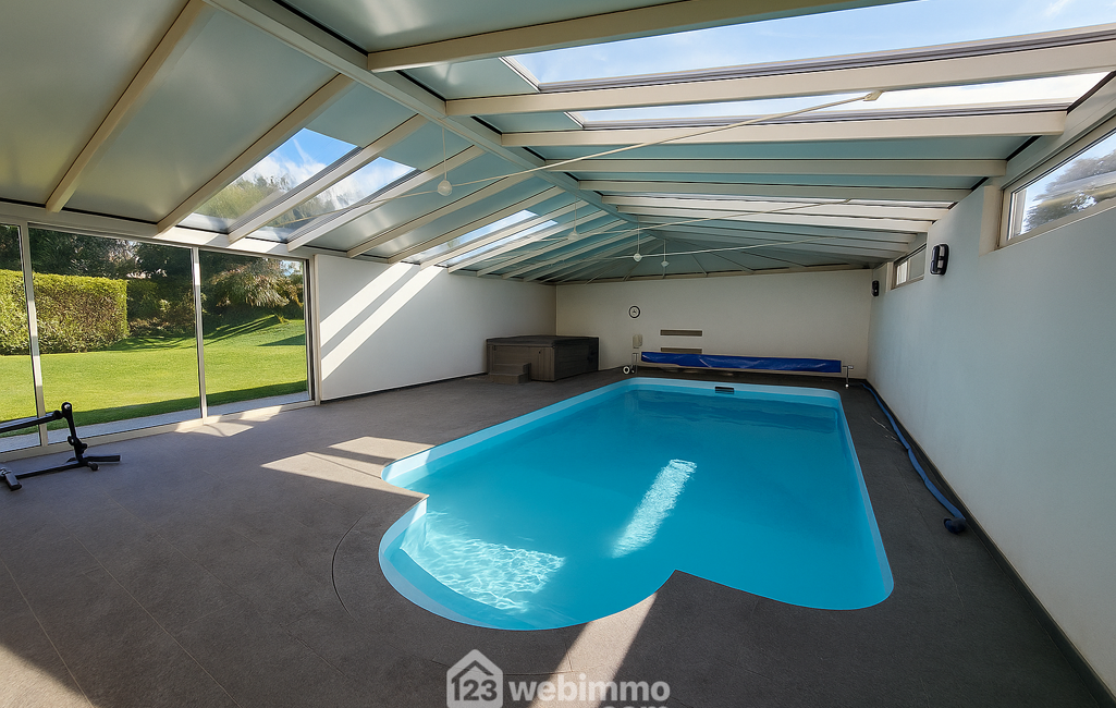 À l'extérieur, le jardin paysager déploie ses allées fleuries et ses espaces de loisirs. Une grande terrasse plein sud vous accueillera pour vos repas d'été, tandis que la piscine chauffée prolongera les baignades bien au-delà des beaux jours. Un garage, plusieurs places de stationnement, une serre, un abri de jardin et même un terrain de pétanque viennent enrichir cet environnement déjà privilégié.