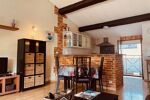 - À l'étage, belle pièce de vie climatisée, séjour chaleureux et cuisine entièrement équipée