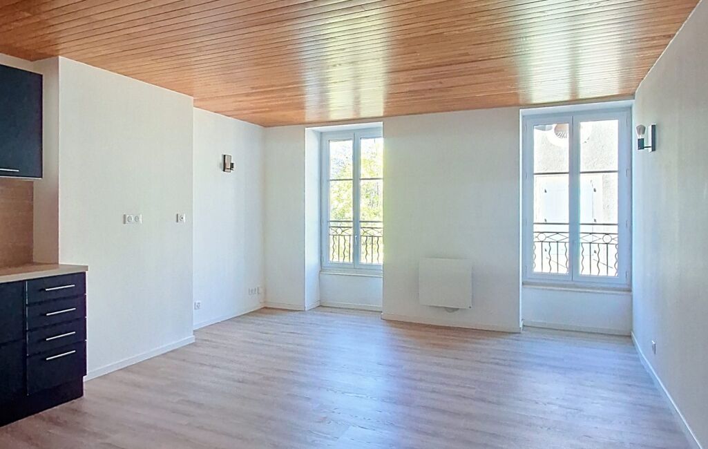 Réalmont centre ville (81120) - Beaucoup de charme pour cet appartement de type 3 de 58m² situé au 2ème étage, composé d'une pièce de vie avec cuisine aménagée et équipée, deux chambres, une belle salle d'eau et un wc séparé. Chauffage électrique.