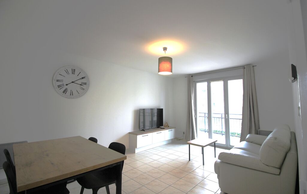 - Un salon ouvrant sur un balcon, équipé d'une TV et d'un coin repas