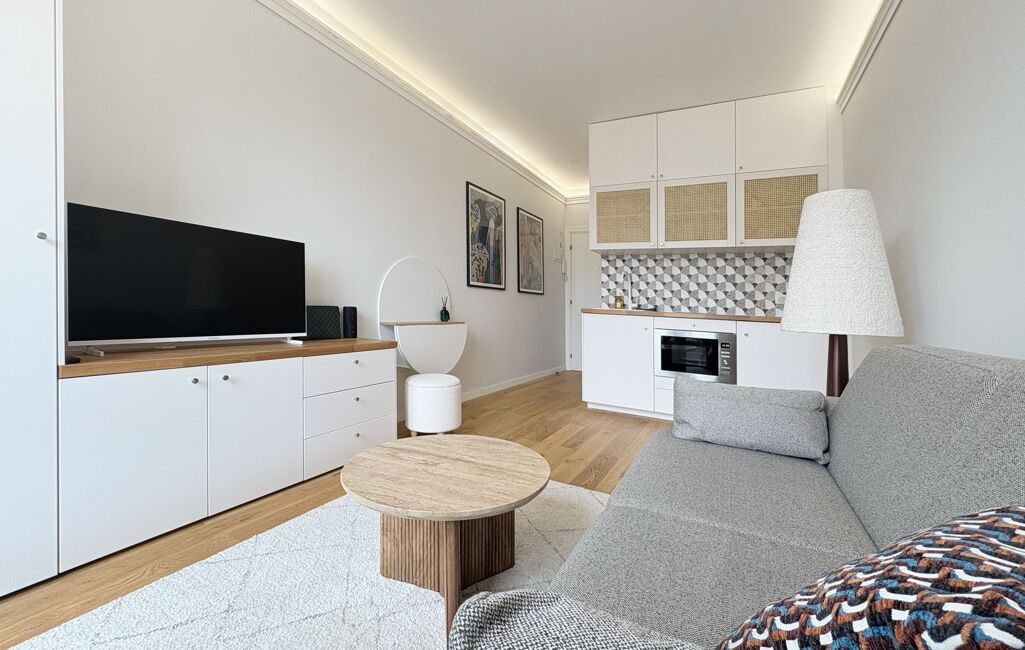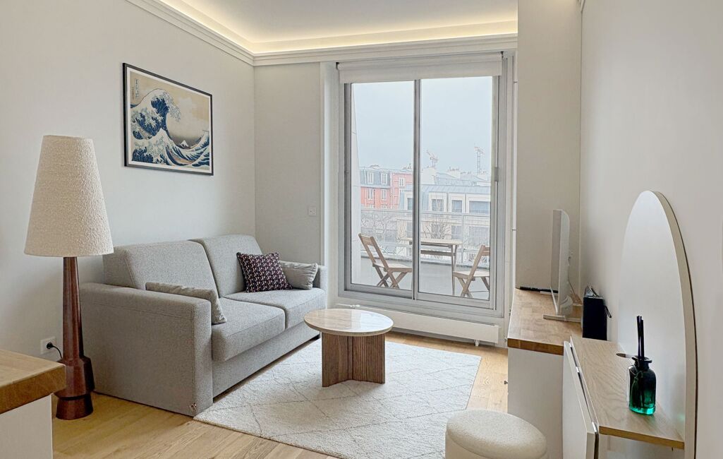 A la frontière Neuilly / Paris 17, dans une résidence de standing en dernier étage, studio refait à neuf par architecte avec prestations haut de gamme.