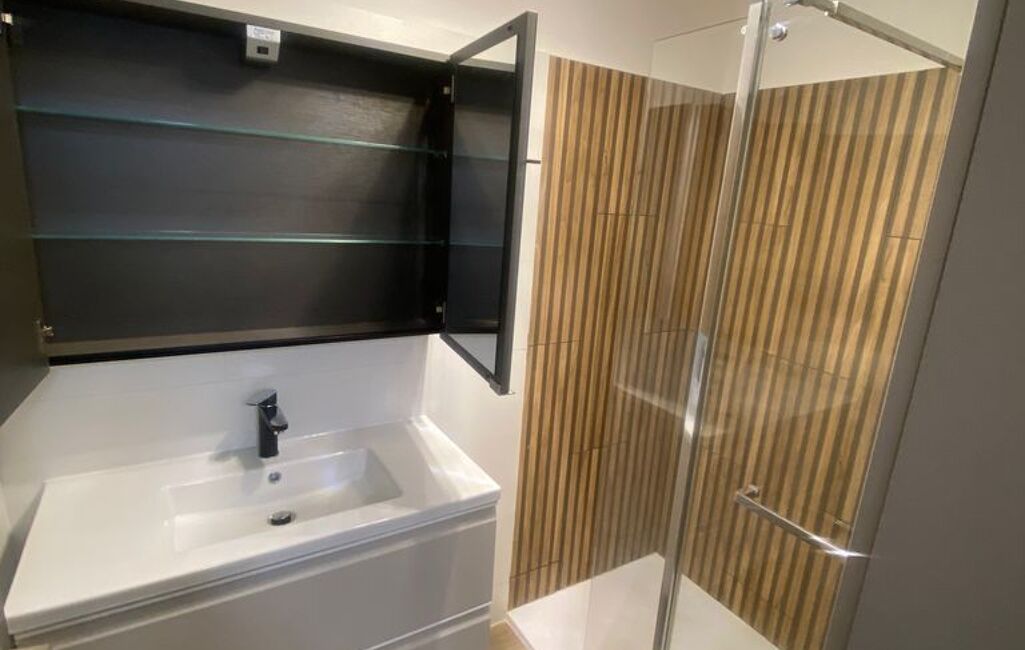 Réfrigérateur Liebherr , four électrique Bosch , Lave Vaisselle bosch , Plaque Induction Brandt , Micro Onde Samsung,ts les appareils sont neufs et garanties , de 2 chambres , WC indépendant, 1 cellier, Salle de Bain avec douche à l Italienne, Robinetterie Grohe , Leuble Vasque de 0.90, Armoire de Toilette , Meuble Colonne , Sécha Serviette