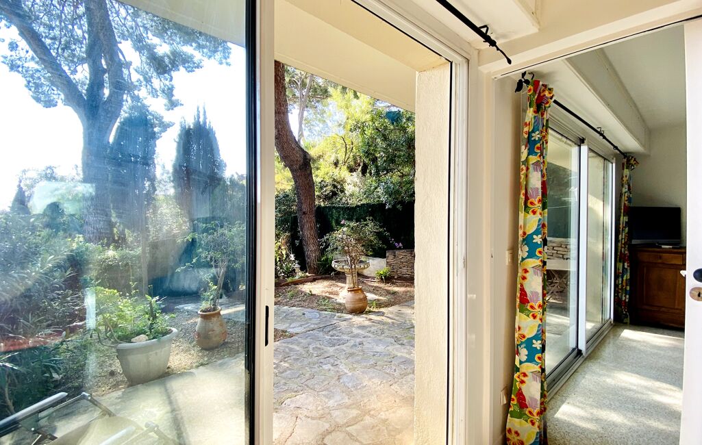 Nichée dans une résidence de standing avec parking fermé et sécurisé, cette adresse rare combine le charme de la vie citadine et la sérénité d'un jardin privatif arboré, idéal pour profiter des douces soirées méditerranéennes.